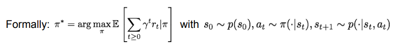 - pi* = policy pi에 대한 future reward의 합의 기댓값을 최대화시키는 것