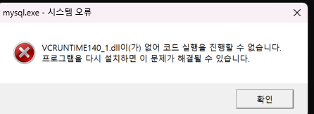 여기서 VCRUNTIME140_1.dll이 없어 코드 실행을 진행할 수 없습니다 에러를 확인할 수 있었다.