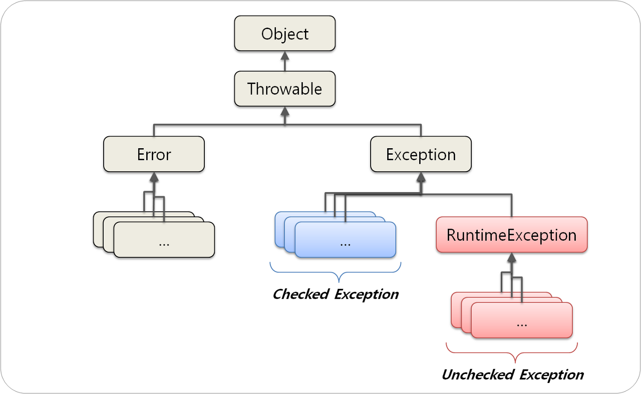 - 그 외 Exception의 자식 클래스 = CheckedException