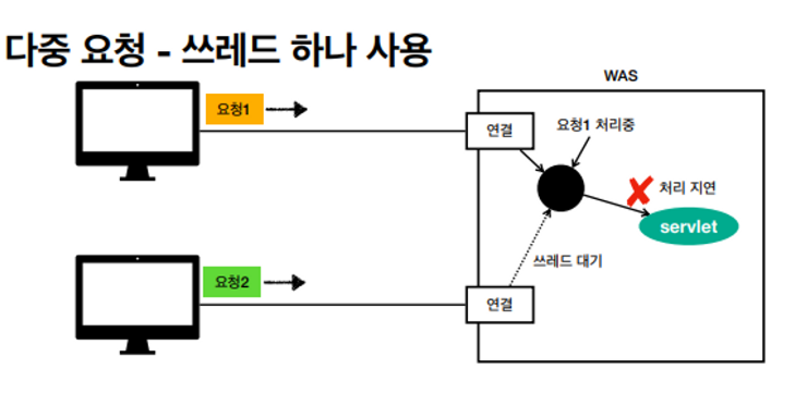 WAS가 멀티 쓰레드를 지원해준다!! > 개발자가 멀티 쓰레드를 신경 쓸 필요 없다. 싱글톤 객체만 주의해서 사용