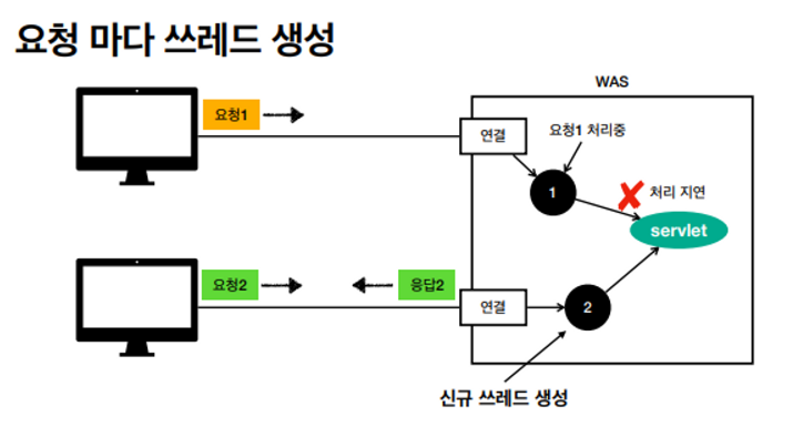 > 고객 요청마다 쓰레드를 생성할 경우 응답 속도가 늦어짐
