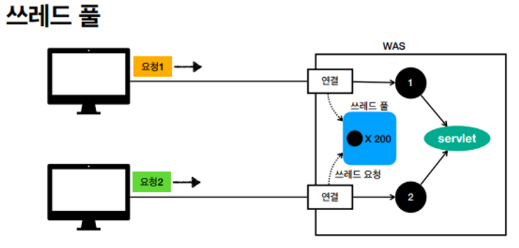 - 웹 서버에 동시에 여러 요청이 들어와도 서블릿 컨테이너가 알아서 처리해 줌