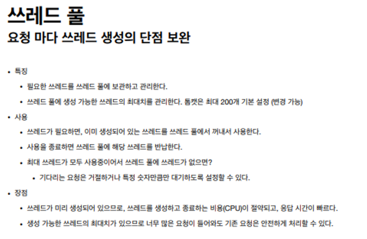 - 사용이 끝나면 쓰레드 풀에 쓰레드 반납