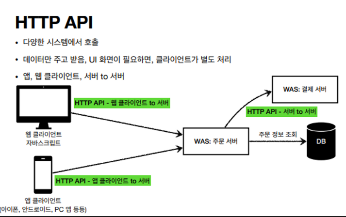 - HTML이 아닌 데이터(주로 JSON 형식)를 통신