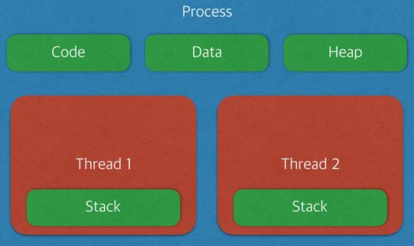 - 스레드 ID, 프로그램 카운터(PC), 레지스터 집합, 스택으로 구성된다. 같은 프로세스에 속한 다른 스레드와 코드, 데이터 섹션, 그리고 열린 파일이나 신호와 같은 운영체제 자원들을 공유한다.